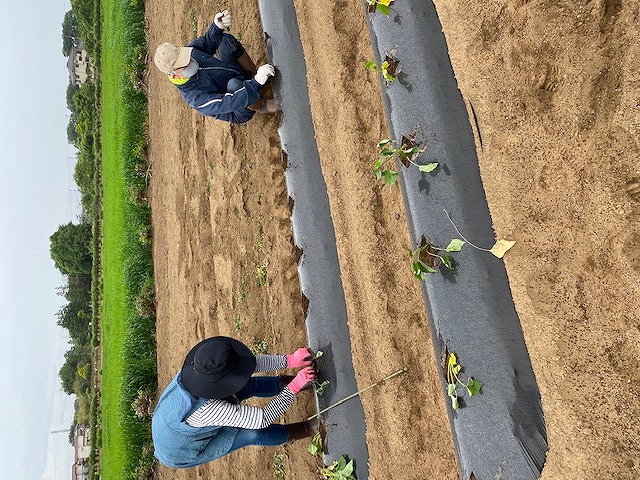 2021年秋「所沢明社芋掘り会」用のさつまいもの苗を植えました。